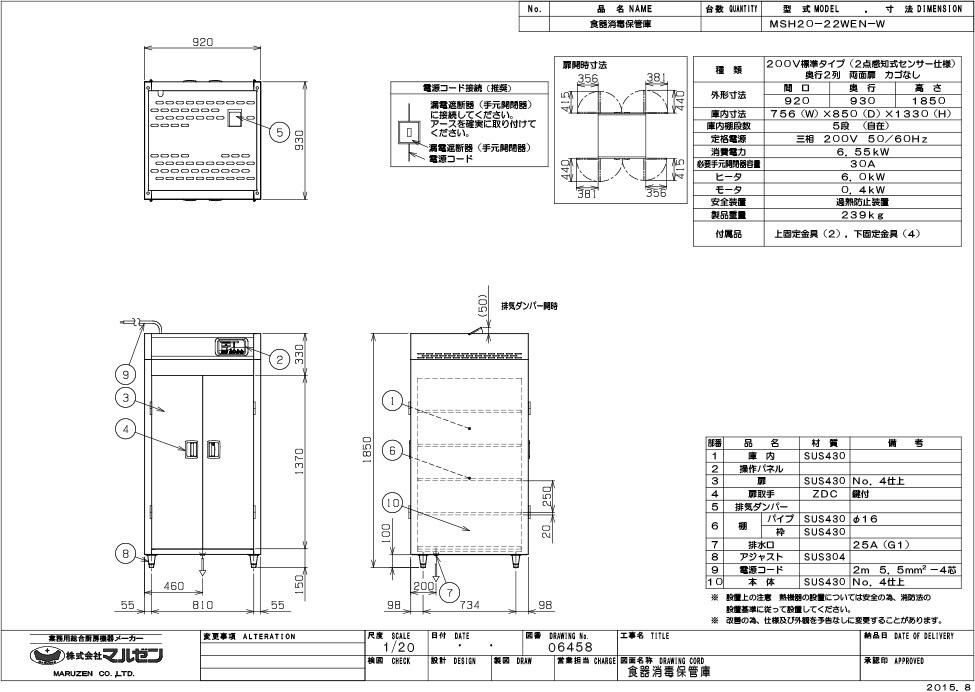【マルゼン】食器消毒保管庫 200V・標準タイプ 奥行2列 両面扉 MSH20-22WEN-W 幅920×奥行930×高さ1850