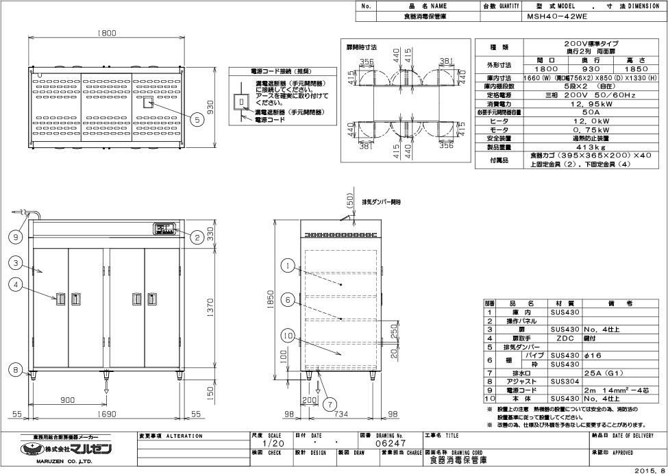 【マルゼン】食器消毒保管庫 MSH40-42WE 幅1800×奥行930×高さ1850 三相200V