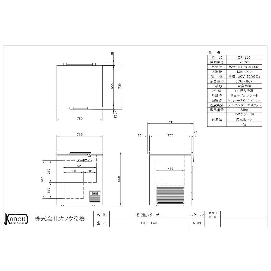 【カノウ冷機】OF-140 超低温フリ-ザ- 130L 単相100V