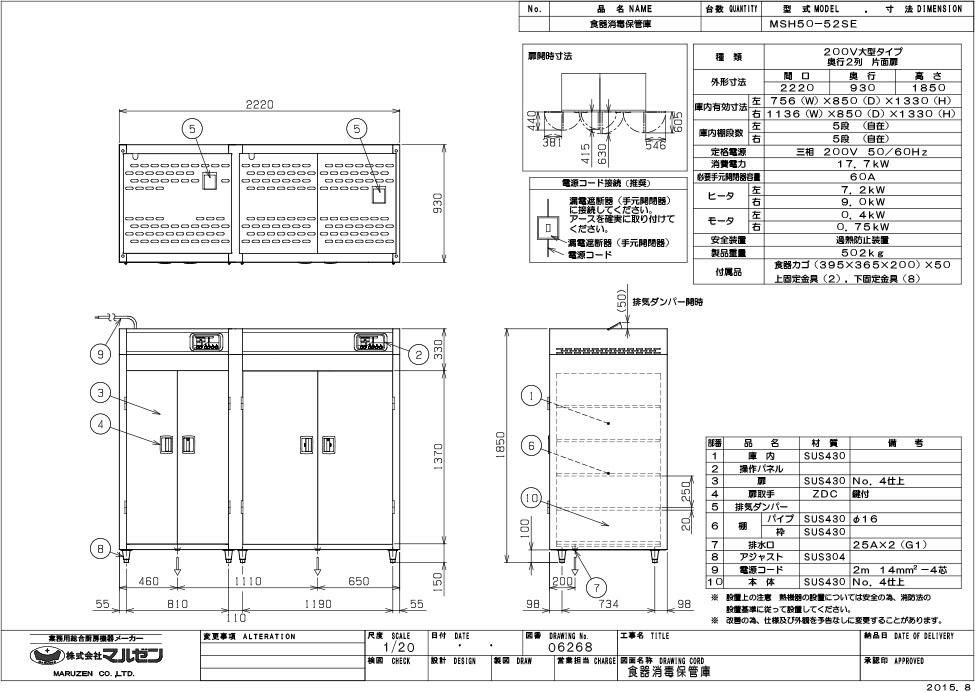【マルゼン】食器消毒保管庫 MSH50-52SE 幅2220×奥行930×高さ1850 三相200V