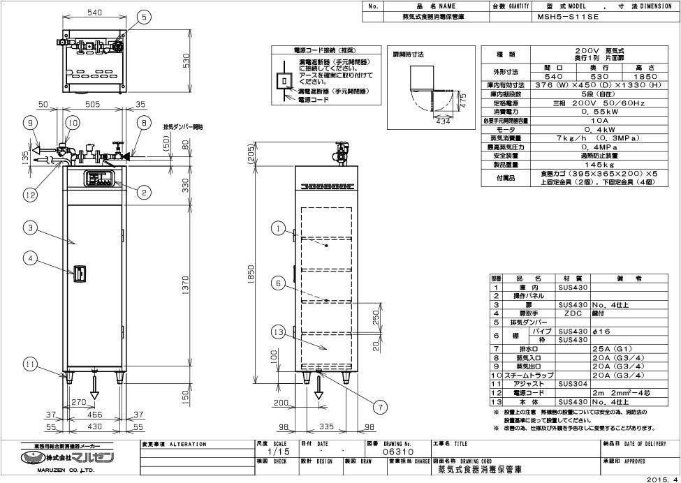 商品名:蒸気食器消毒保管庫 MSH5-S11SE