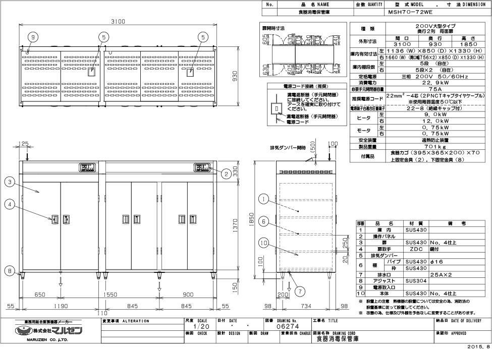 【マルゼン】食器消毒保管庫 MSH70-72WE 幅3100×奥行930×高さ1850 三相200V 50/60Hz