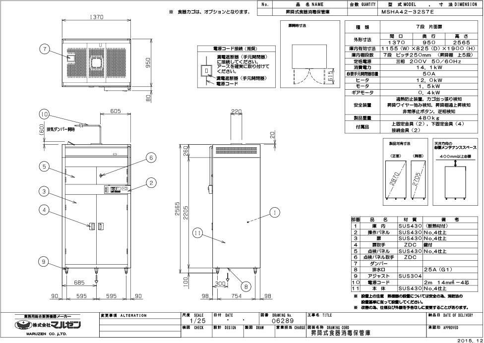 【マルゼン】食器消毒保管庫 昇降式 MSHA42-32S7E 幅1370×奥行950×高さ2565 三相200V 50/60Hz