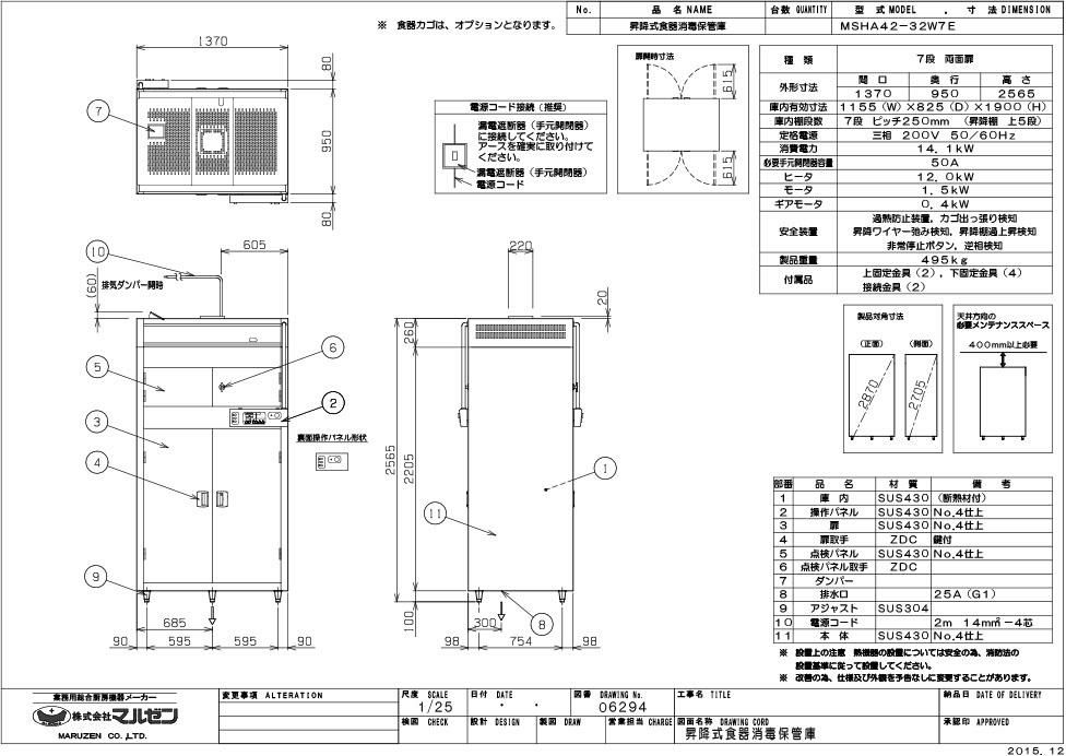 【マルゼン】食器消毒保管庫 昇降式 MSHA42-32W7E 幅1370×奥行950×高さ2565 三相200V 50/60Hz