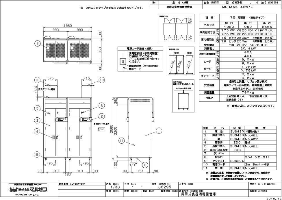 【マルゼン】食器消毒保管庫 昇降式 7段 両面扉 (連結タイプ) MSHA56-42W7E 幅1980×奥行950×高さ2565 三相200V 50/60Hz