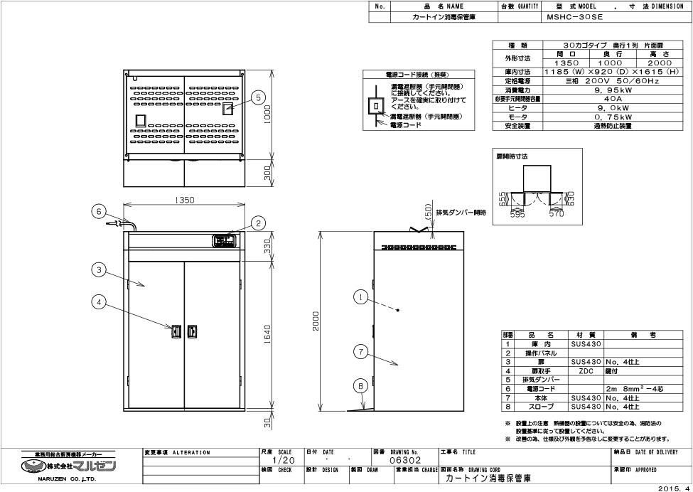 【マルゼン】カートイン消毒保管庫 MSHC-30SE 幅1350×奥行1000×高さ2000 三相200V