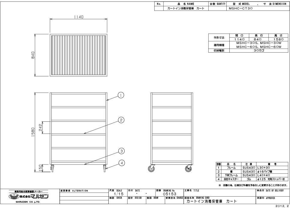 【マルゼン】保管庫専用カート MSHC-CT30 幅1140×奥行840×高さ1580
