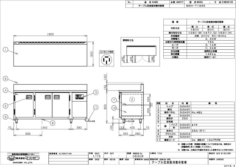 【マルゼン】食器消毒保管庫 テーブルタイプ MSH-T186E 幅1800×奥行600×高さ800 三相200V 50/60Hz