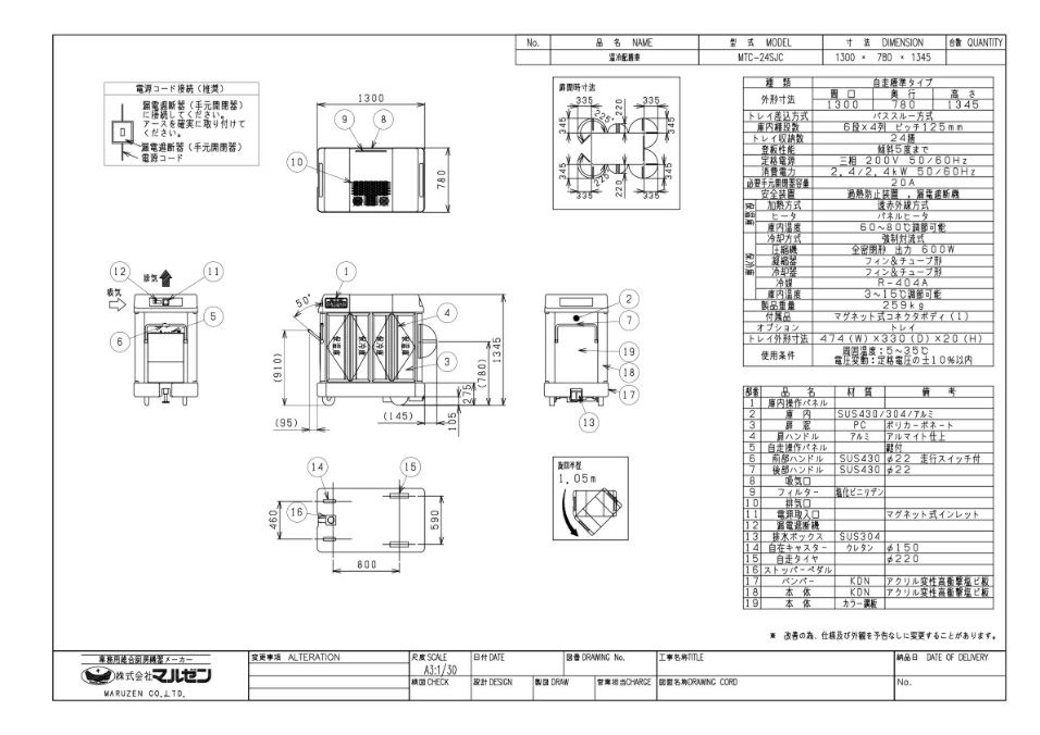 外形寸法:幅1300×奥行780×高さ1345(mm)