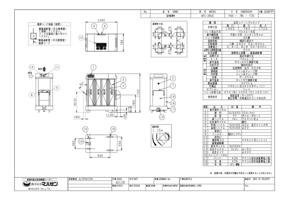 外形寸法:幅1400×奥行780×高さ1720(mm)