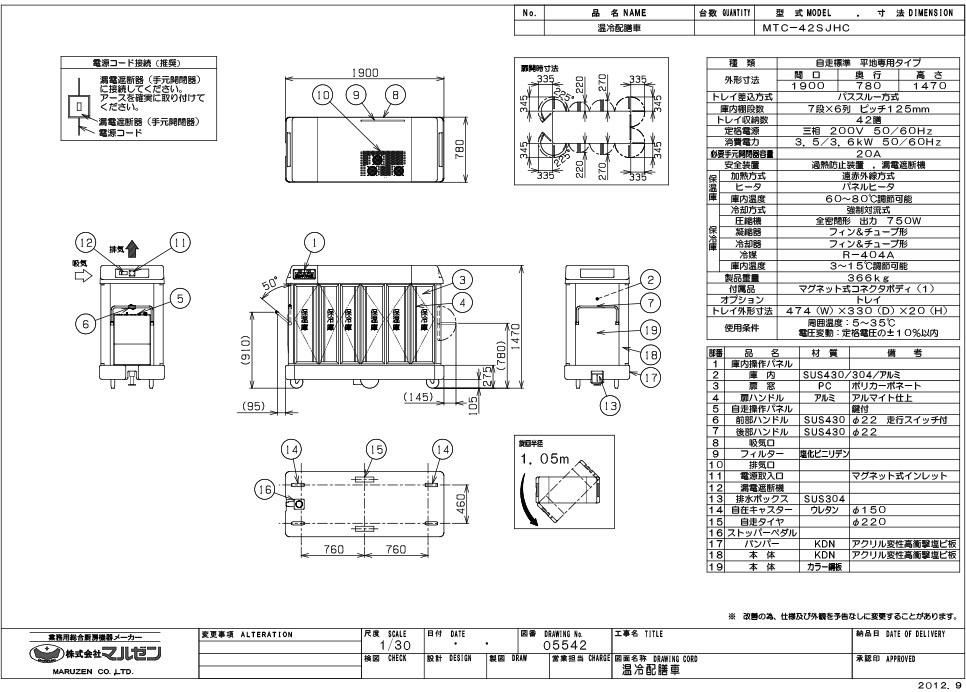 【マルゼン】温冷配膳車 自走式 MTC-42SJHC 幅1900×奥行780×高さ1470 三相200V