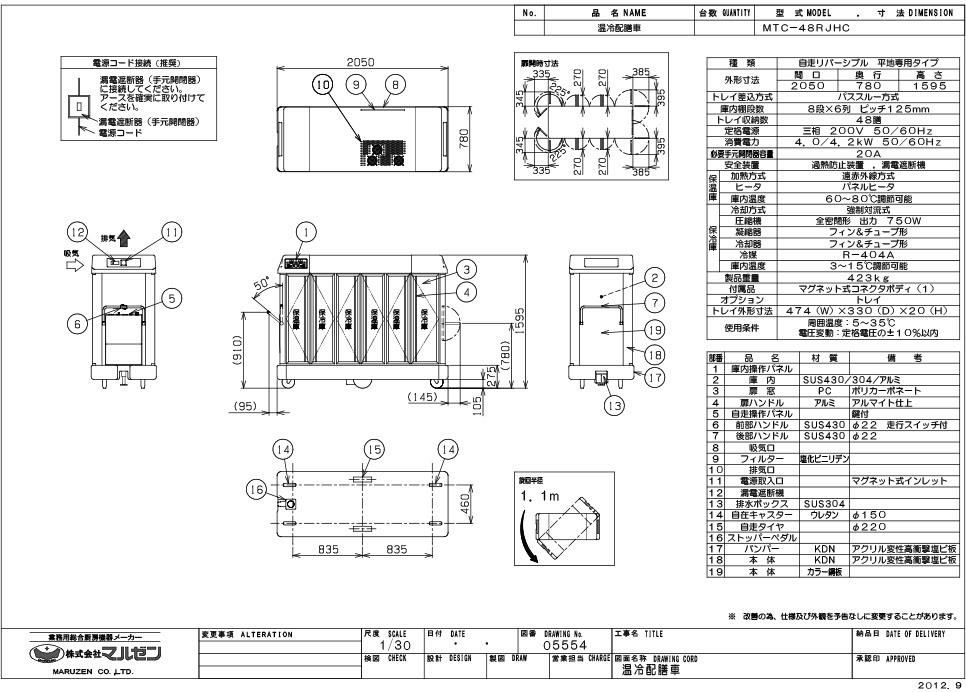 【マルゼン】温冷配膳車 自走式 MTC-48RJHC 幅2050×奥行780×高さ1595 三相200V