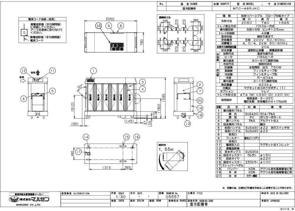 【マルゼン】温冷配膳車 自走式 MTC-48RJKC 幅2050×奥行780×高さ1595 三相200V