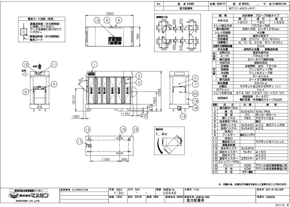 【マルゼン】温冷配膳車 自走式 MTC-48SJKC 幅1900×奥行780×高さ1595 三相200V