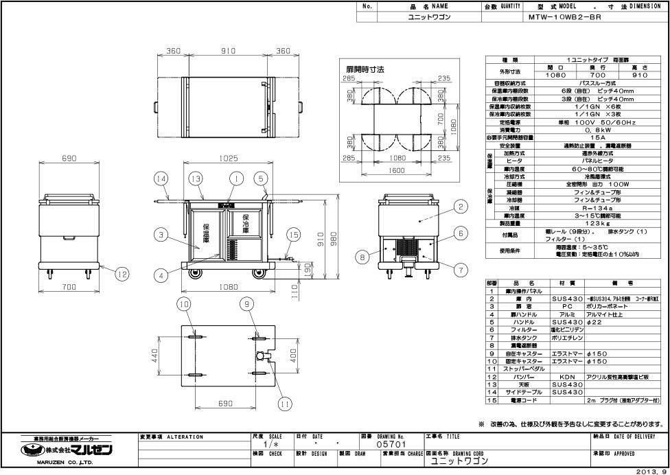 【マルゼン】ユニットワゴン MTW-10WB2-BR 幅1080×奥行700×高さ910 三相100V 50/60Hz