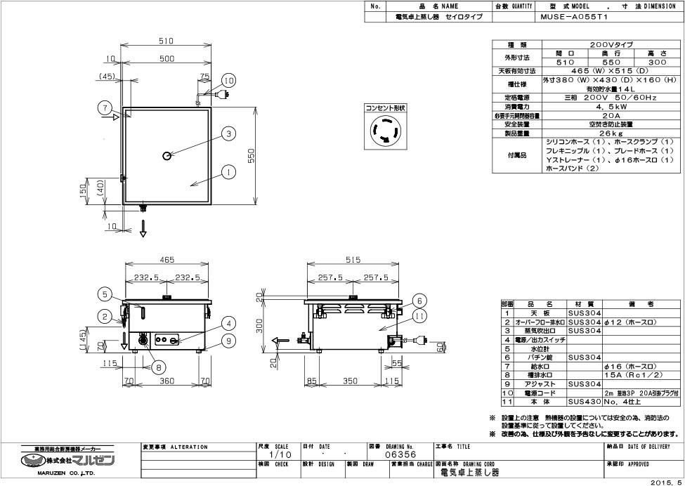 【マルゼン】電気卓上蒸し器 MUSE-A055T1 幅510×奥行550×高さ300mm