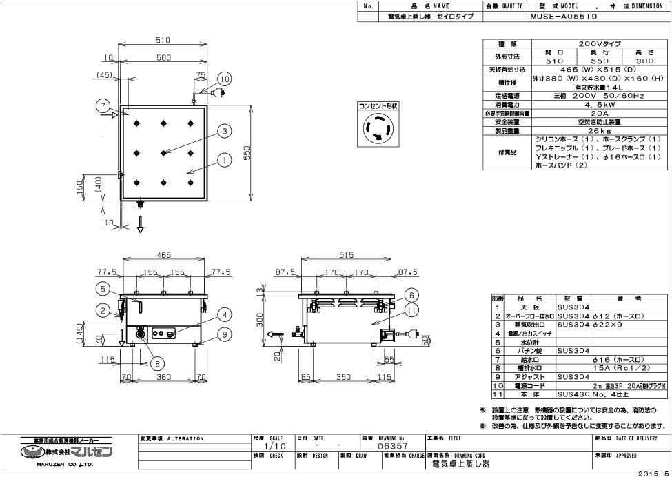 【マルゼン】電気卓上蒸し器 MUSE-A055T9 幅510×奥行550×高さ300mm