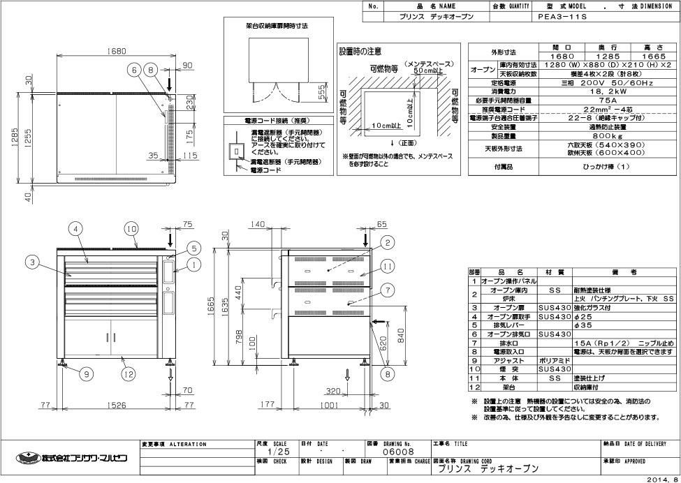 【マルゼン】デッキオーブン プリンス PEA3-11S 幅1680×奥行1285×高さ1665 三相200V