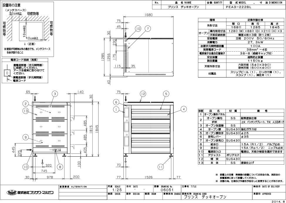 【マルゼン】デッキオーブン プリンス PEA3-222BL 幅1680×奥行1285×高さ1845 三相200V