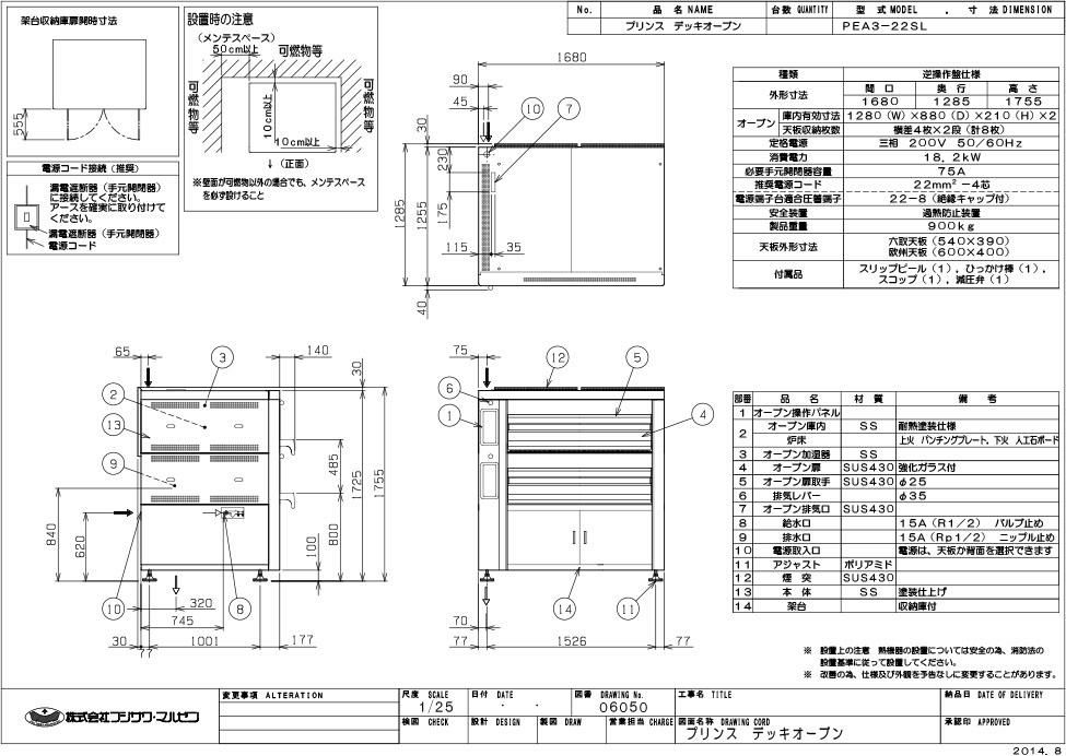 【マルゼン】デッキオーブン プリンス PEA3-22SL 幅1680×奥行1285×高さ1755 三相200V