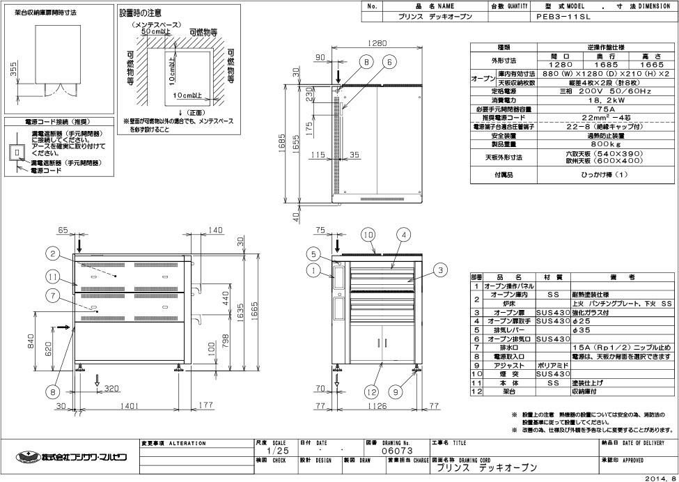 【マルゼン】デッキオーブン プリンス PEB3-11SL 幅1280×奥行1685×高さ1665 三相200V