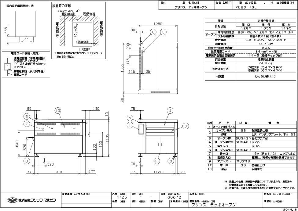 【マルゼン】デッキオーブン プリンス PEB3-1SL 幅1280×奥行1655×高さ1195 三相200V