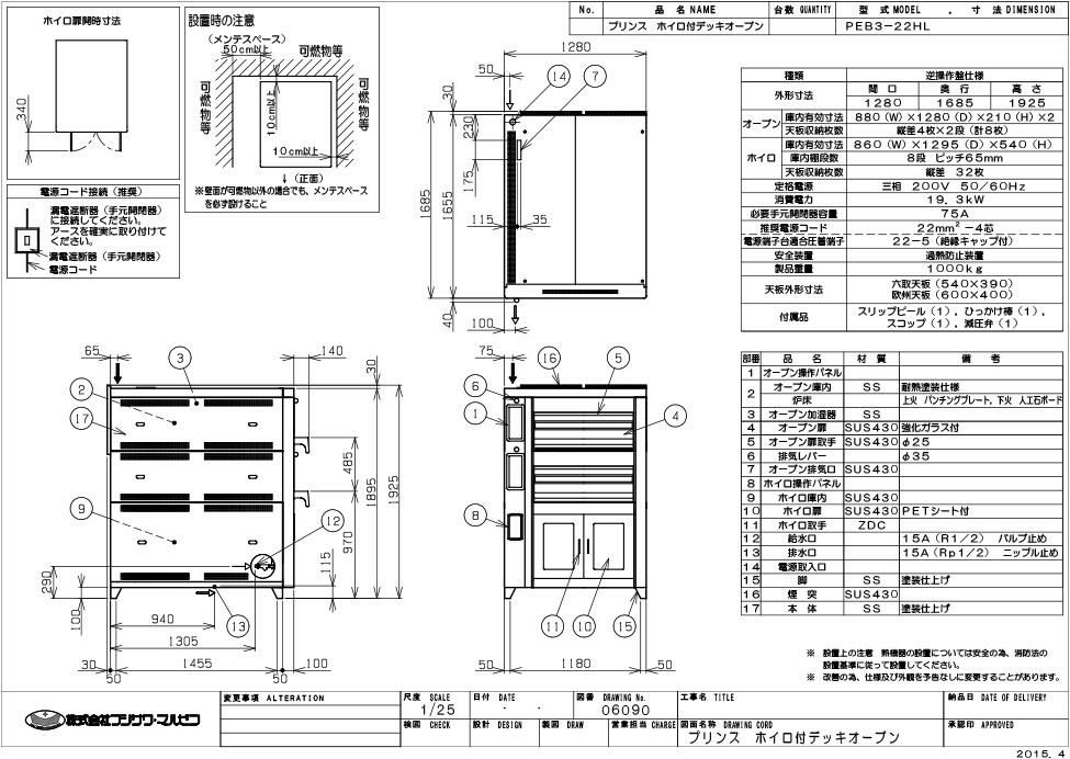 【マルゼン】デッキオーブン プリンス PEB3-22HL 幅1280×奥行1685×高さ1925 三相200V