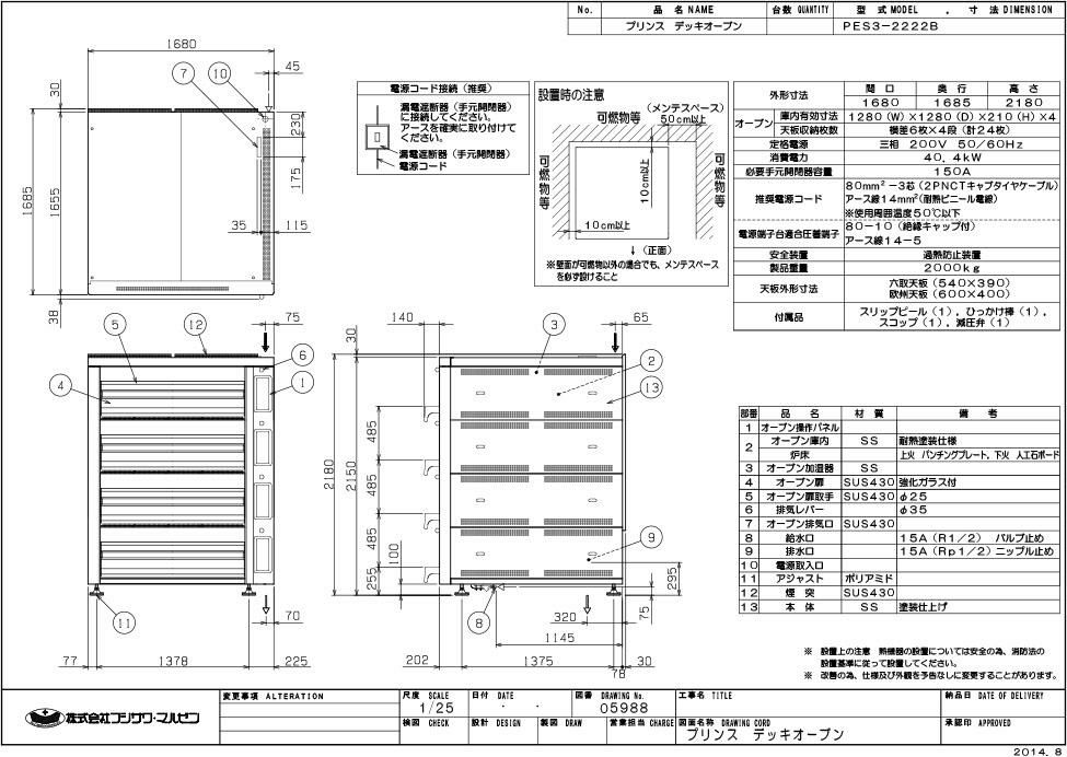 【マルゼン】デッキオーブン プリンス PES3-2222B 幅1680×奥行1685×高さ2180 三相200V