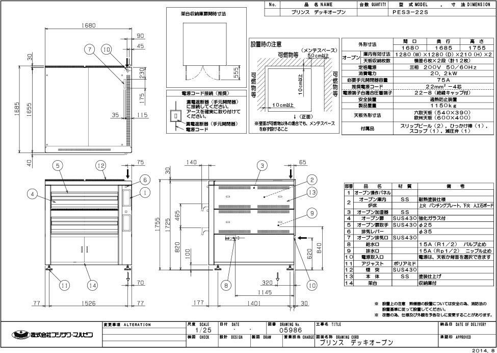 【マルゼン】デッキオーブン プリンス PES3-22S 幅1680×奥行1685×高さ1755 三相200V