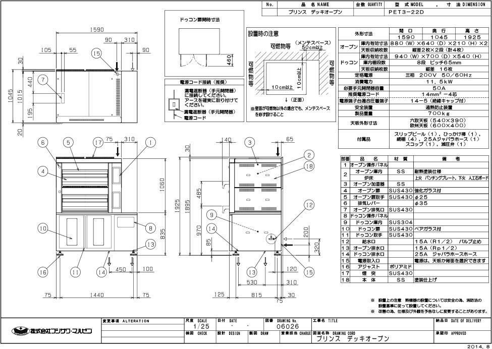【マルゼン】デッキオーブン プリンス PET3-22D 幅1590×奥行1045×高さ1925 三相200V