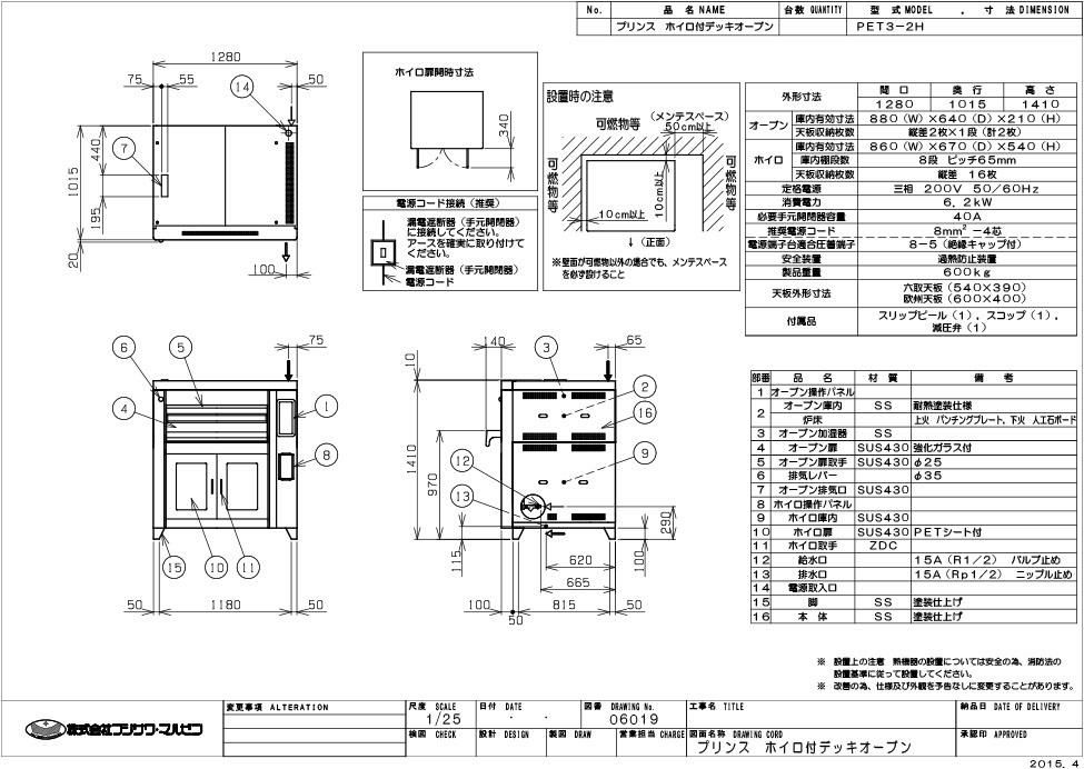 【マルゼン】デッキオーブン プリンス PET3-2H 幅1280×奥行1015×高さ1410 三相200V