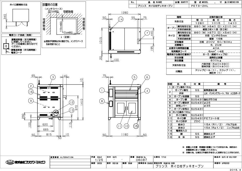 【マルゼン】デッキオーブン プリンス PET3-2HL 幅1280×奥行1015×高さ1410 三相200V