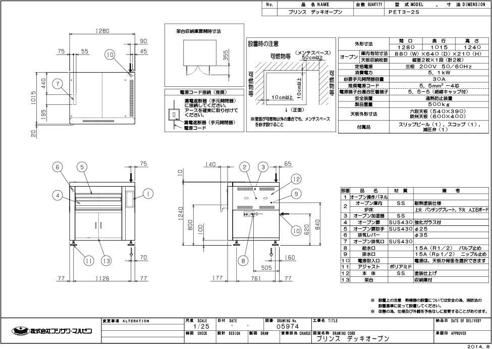 【マルゼン】デッキオーブン プリンス PET3-2S 幅1280×奥行1015×高さ1240 三相200V