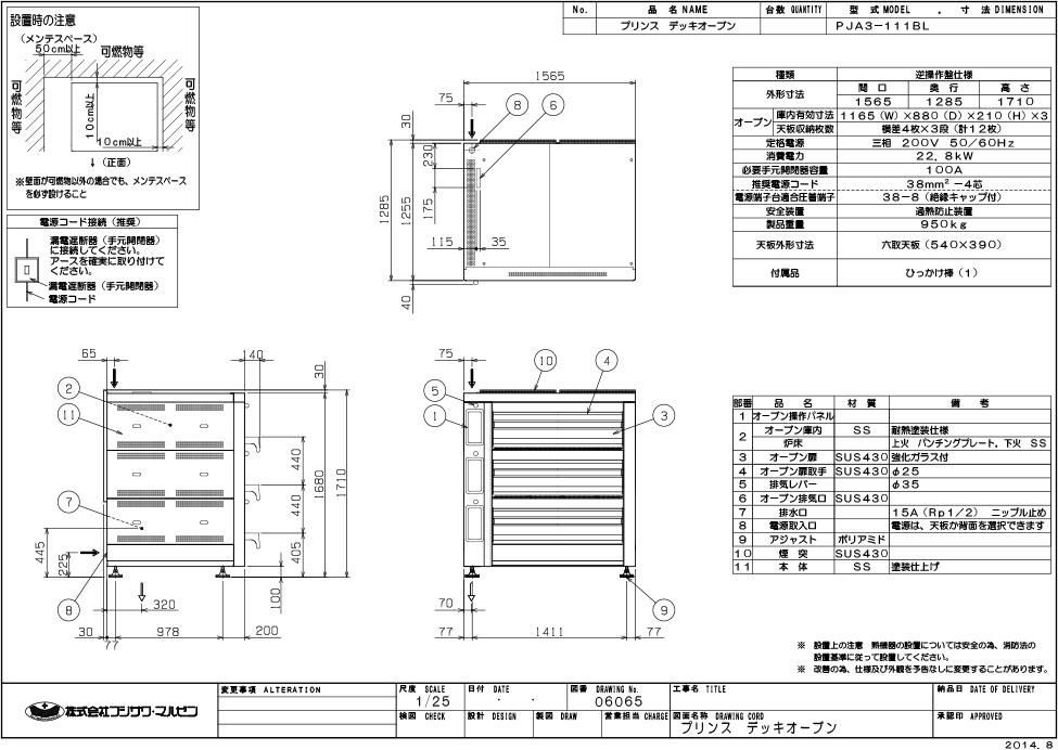 【マルゼン】デッキオーブン プリンス PJA3-111BL 幅1565×奥行1285×高さ1710 三相200V
