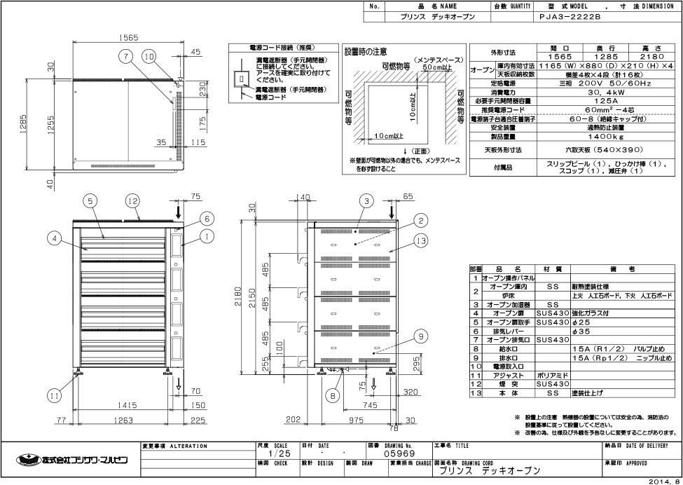 【マルゼン】デッキオーブン プリンス PJA3-2222B 幅1565×奥行1285×高さ2180 三相200V