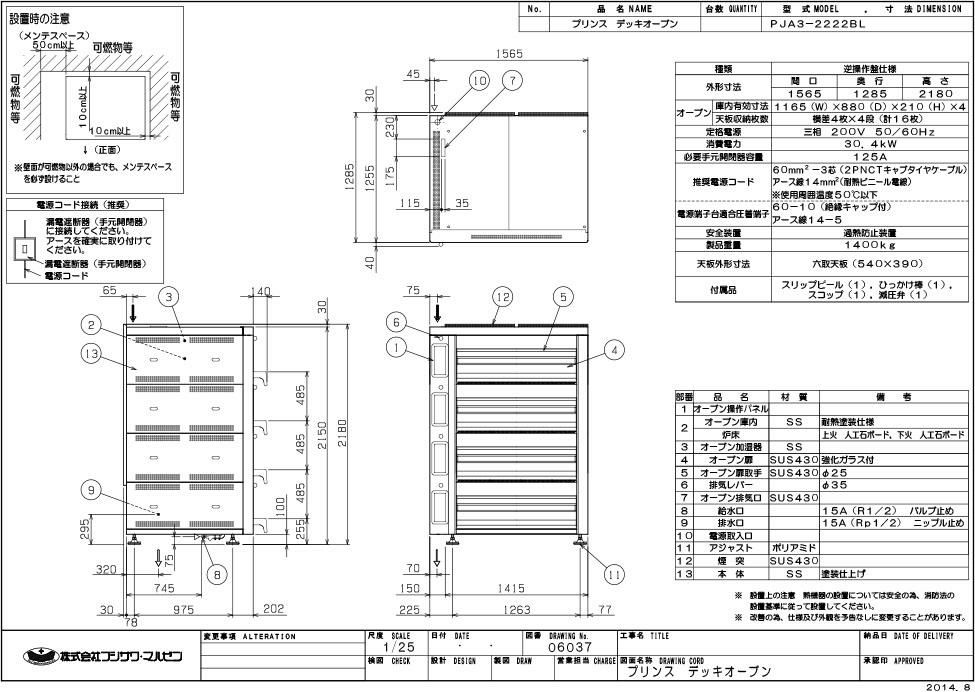 【マルゼン】デッキオーブン プリンス PJA3-2222BL 幅1565×奥行1285×高さ2180 三相200V