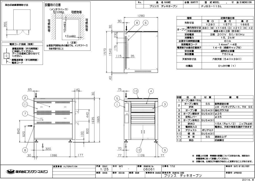 【マルゼン】デッキオーブン プリンス PJB3-11SL 幅1280×奥行1570×高さ1665 三相200V