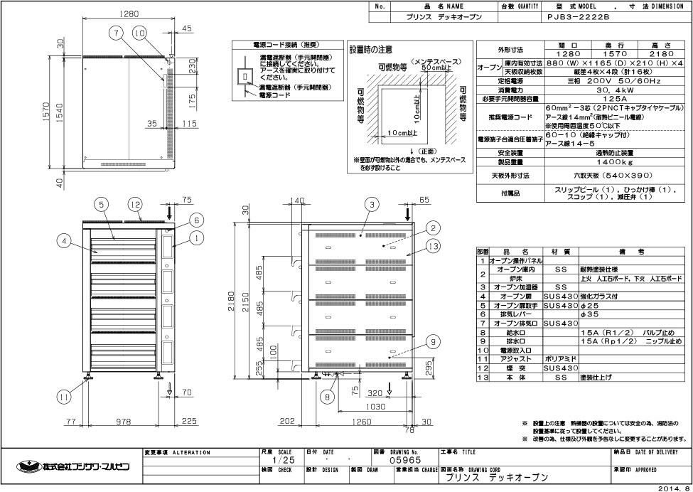 【マルゼン】デッキオーブン プリンス PJB3-2222B 幅1280×奥行1570×高さ2180 三相200V