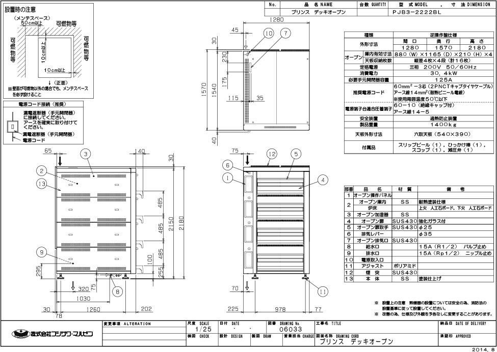【マルゼン】デッキオーブン プリンス PJB3-2222BL 幅1280×奥行1570×高さ2180 三相200V