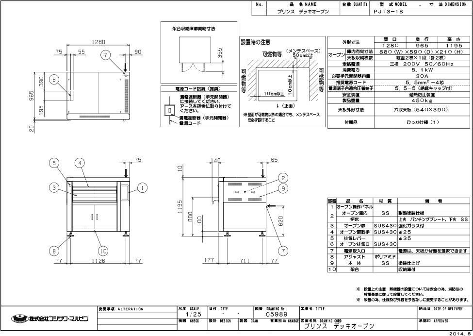 【マルゼン】デッキオーブン プリンス PJT3-1S 幅1280×奥行965×高さ1195 三相200V