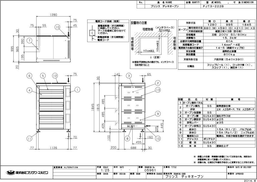 【マルゼン】デッキオーブン プリンス PJT3-222B 幅1280×奥行995×高さ1845 三相200V