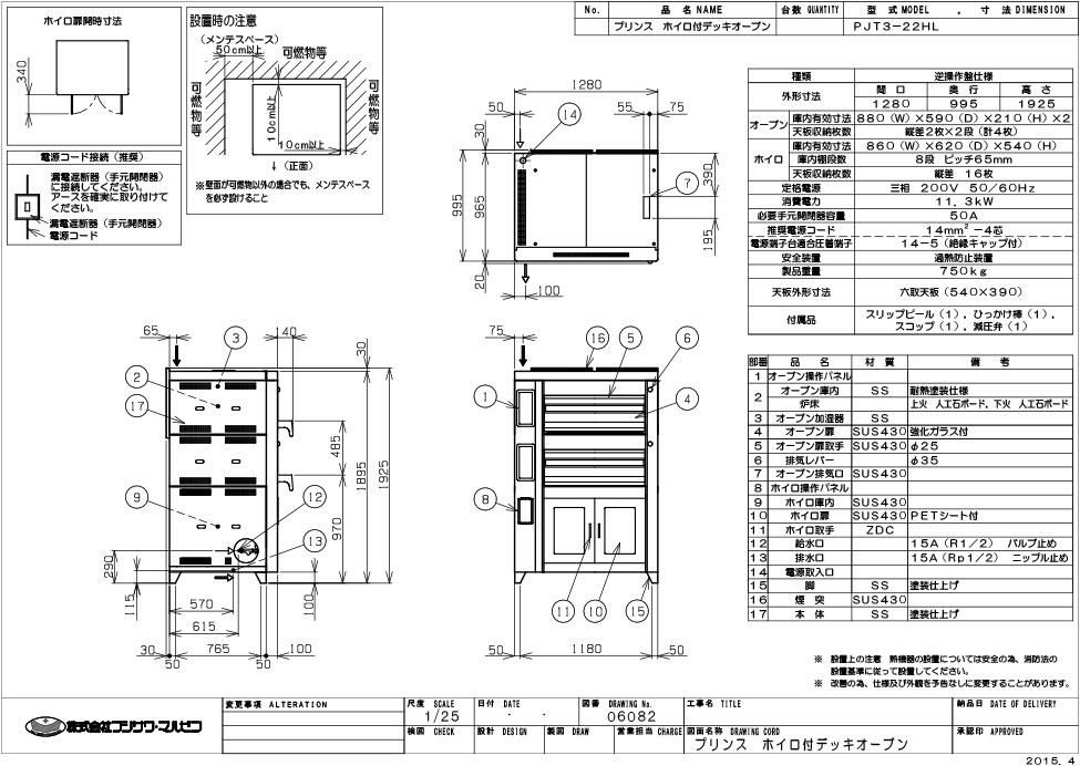 【マルゼン】デッキオーブン プリンス PJT3-22HL 幅1280×奥行995×高さ1925 三相200V