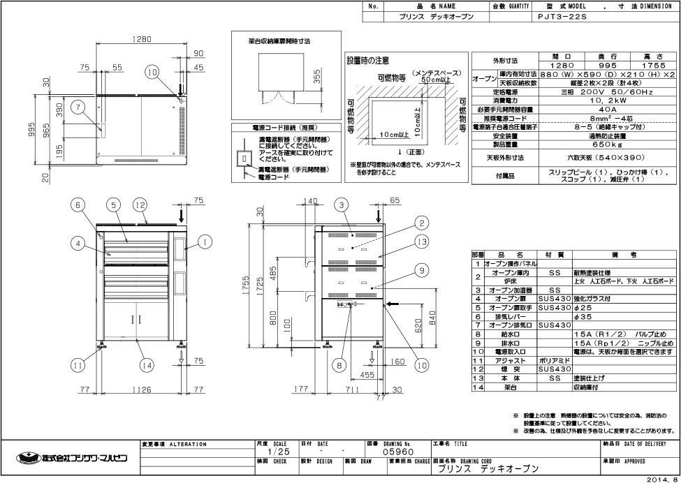 【マルゼン】デッキオーブン プリンス PJT3-22S 幅1280×奥行995×高さ1755 三相200V