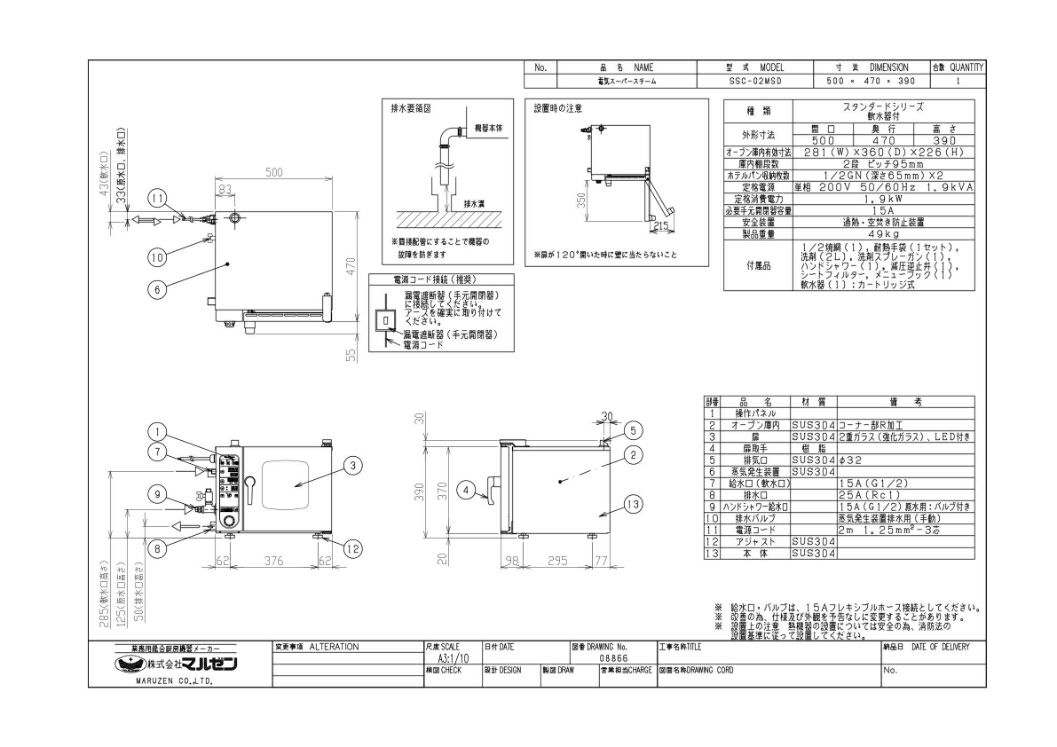 商品名:マルゼン スチームコンベクションオーブン スーパースチーム スタンダードシリーズ 電気式のみ/SSC-02MSD/W500×D470×H390(mm)