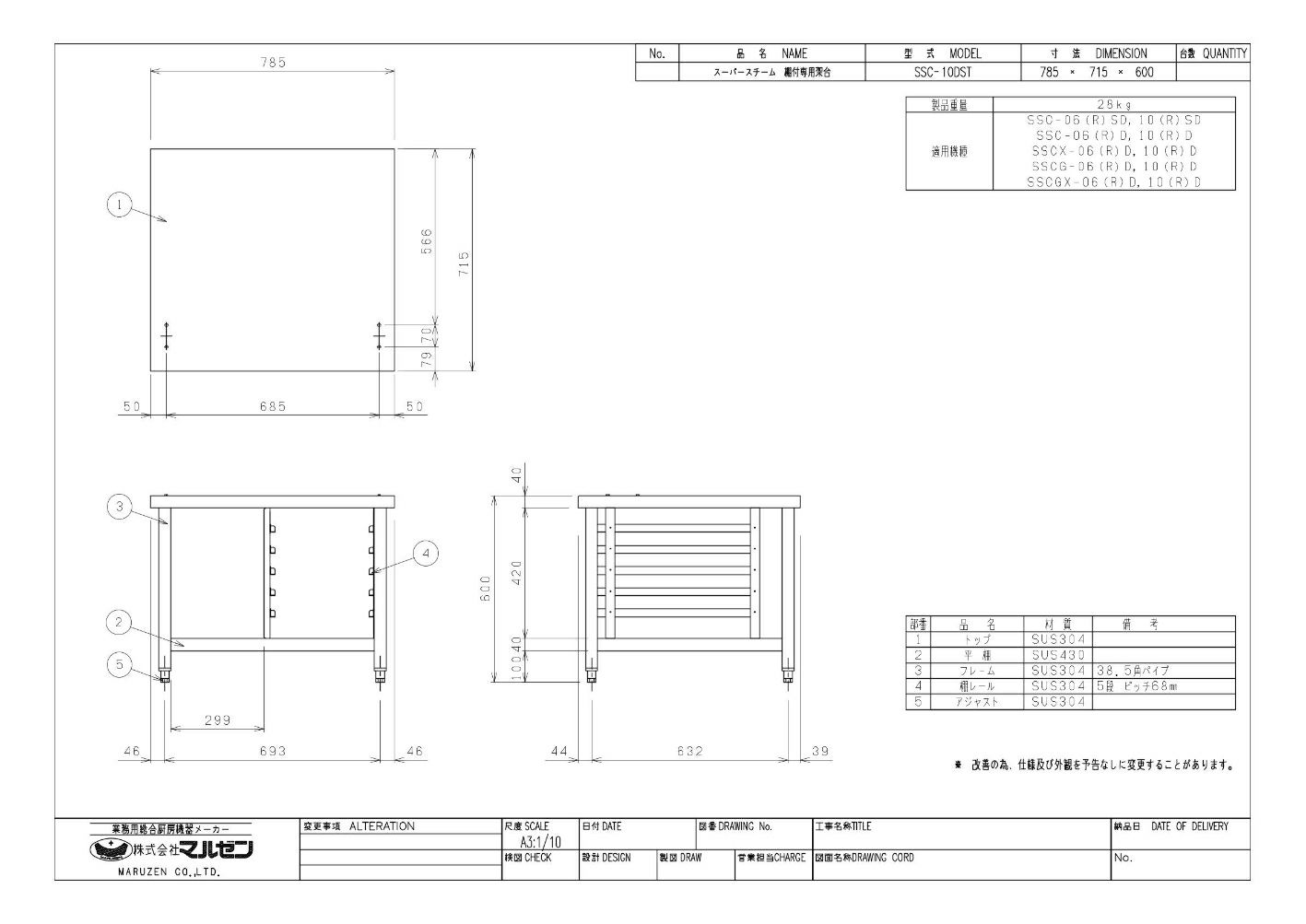【マルゼン】スチームコンベクションオーブン棚付専用架台 SSC-10DST 幅785×奥行715×高さ600mm