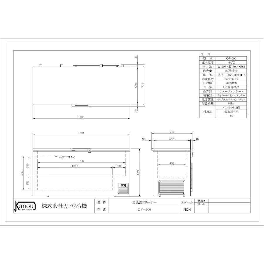 【カノウ冷機】OF-500 超低温フリ-ザ- 480L 単相100V
