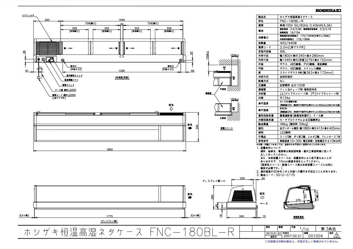 【ホシザキ】恒温高湿ネタケース FNC-180CL-R 幅1800×奥行345×高さ280(mm) 単相100
