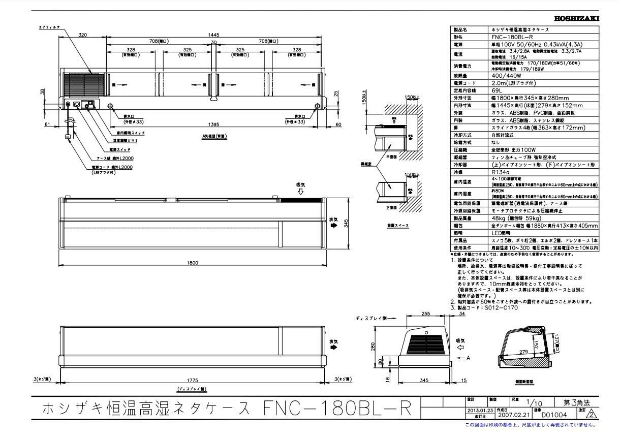 商品名:恒温高湿ネタケース FNC-180BL-R 幅1800×奥行345×高さ280(mm) 単相100