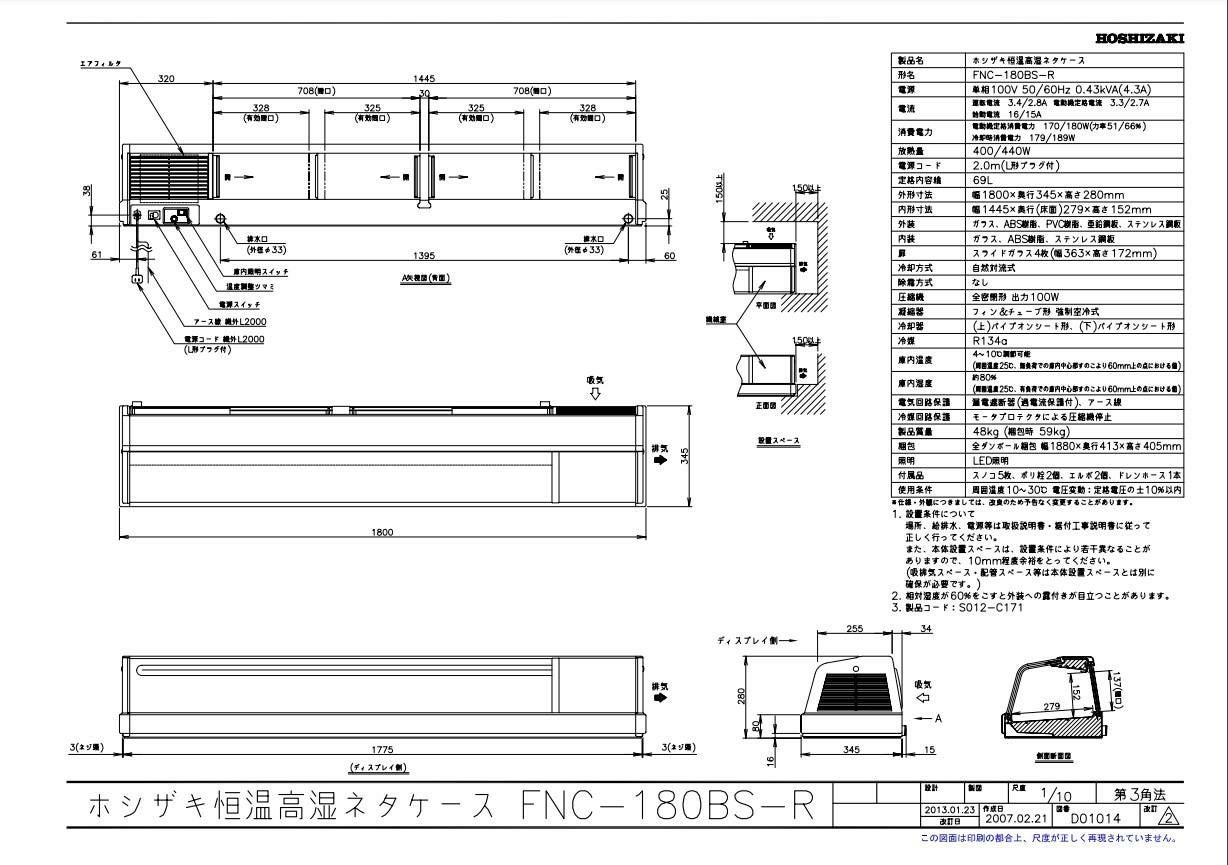 商品名:恒温高湿ネタケース FNC-180CS-R 幅1800×奥行345×高さ280(mm) 単相100