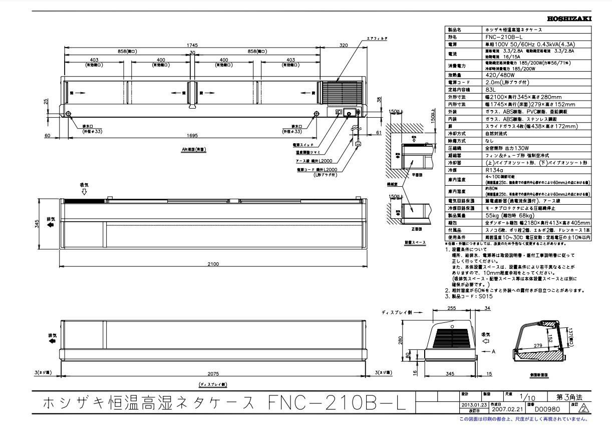 商品名:恒温高湿ネタケース FNC-210B-L 幅2100×奥行345×高さ280(mm) 単相100V
